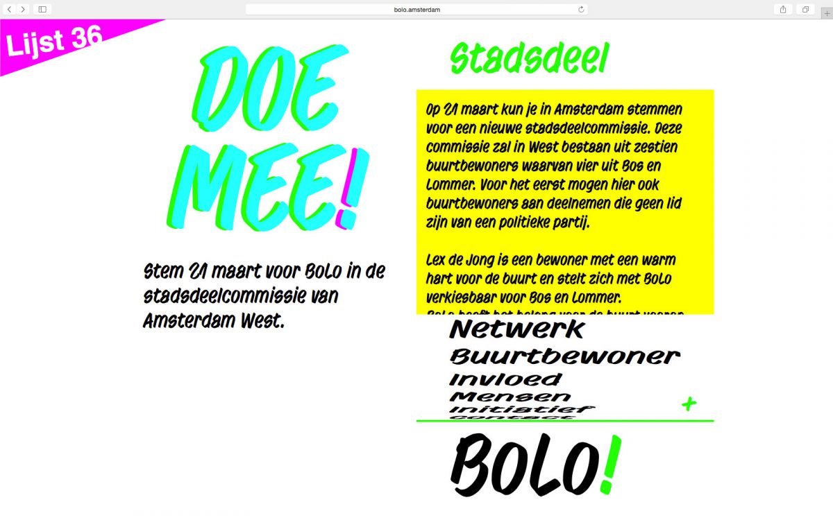 De ‘huisstijl’ van Bolo is erop gericht iedereeen duidelijk te maken dat BoLo een optelsom is van de verschillende delen. Bolo, dat zijn wij!