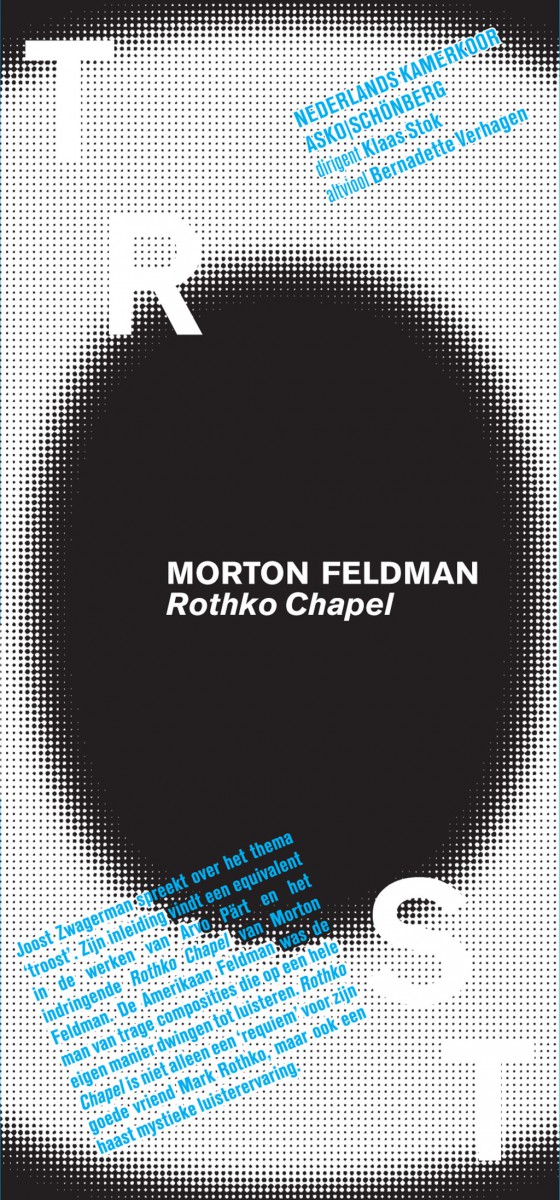 Het typografische beeld refereert éénerzijds aan de muziek van Morton Feldman, anderzijds refereert de centrale 'O' aan het werk van Mark Rothko