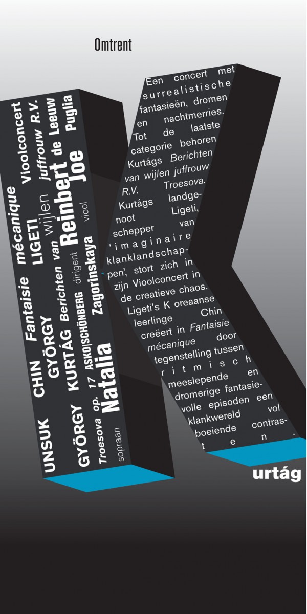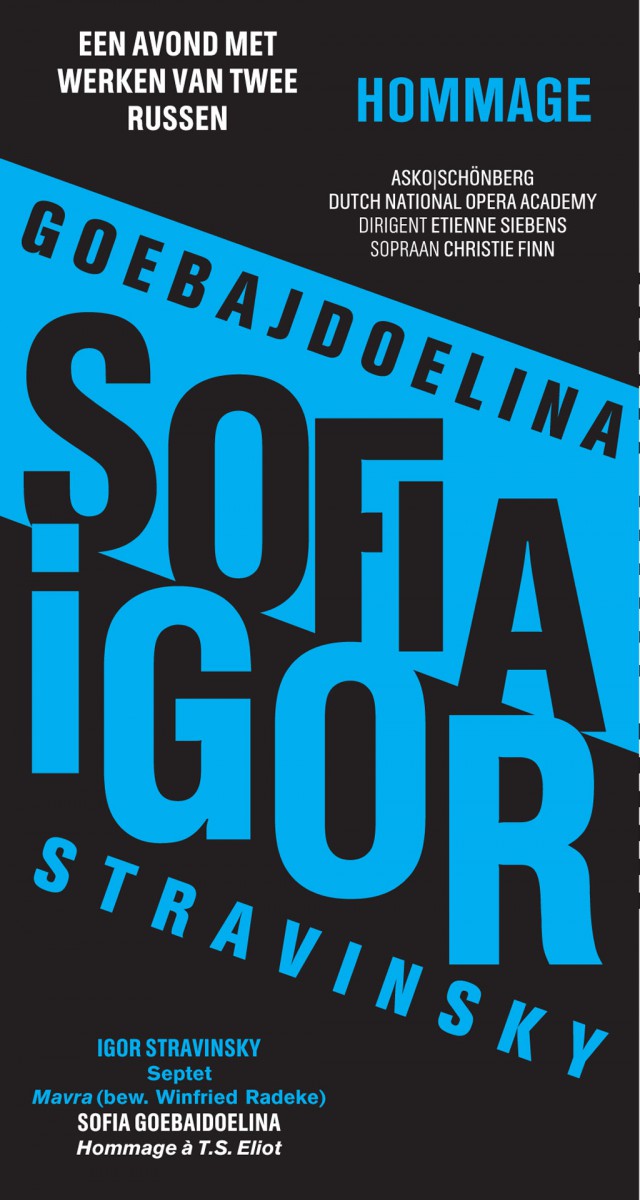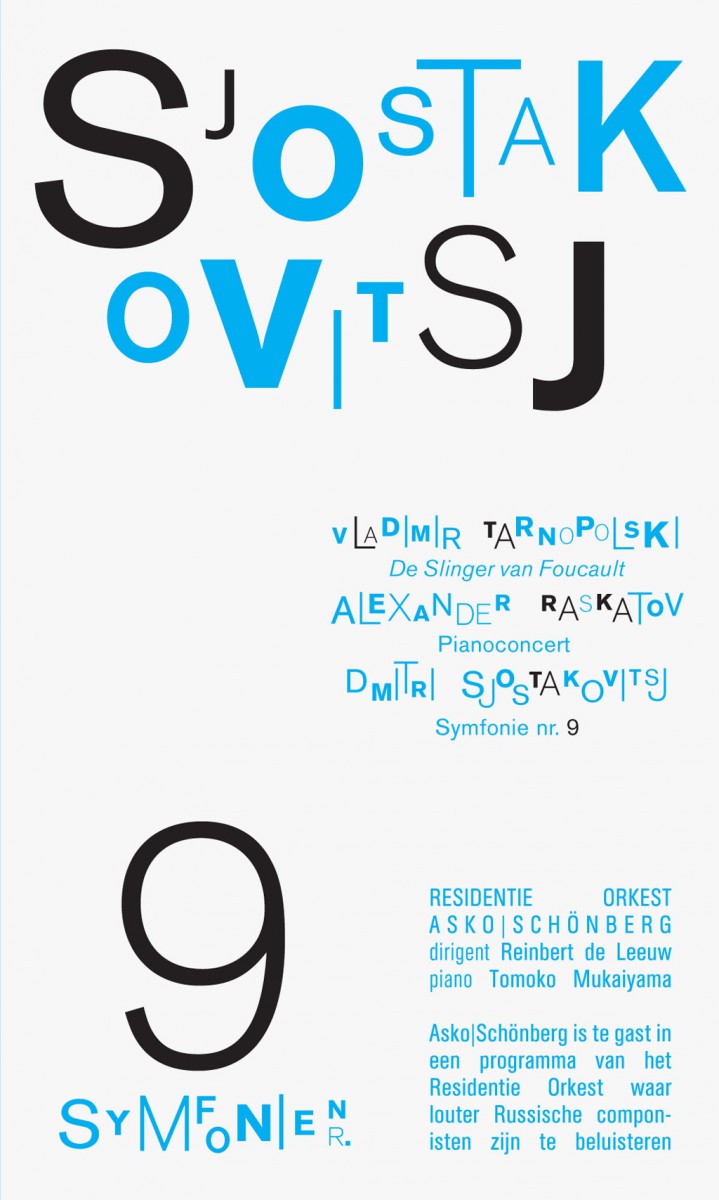 De typografie op de Sjostakovitsj aankondiging is een interpretatie op de klanken en ritmes die in het Sjostakovitsj in zijn werk gebruikte
