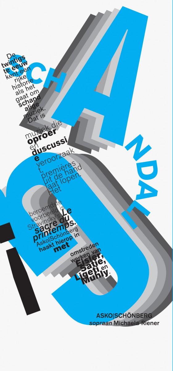 De aankondiging van Schandaal is een typografische eerbetoon aan de typografie van de 20er jaren