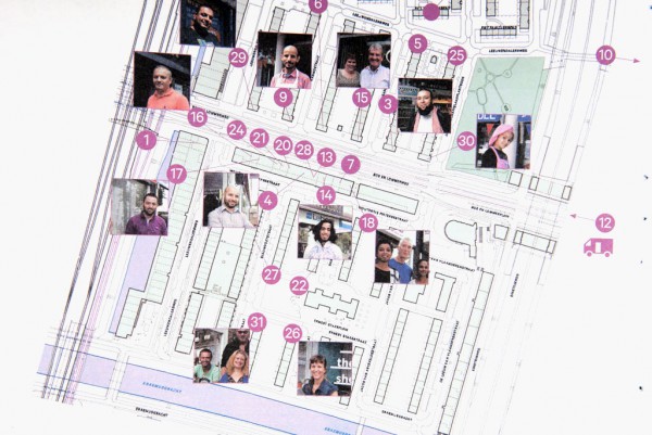 DesignArbeid verzamelde, mede op basis van atlas van de wijk en op basis van een rondgang langs ondernemers en initiatieven in de buurt, alle informatie die is opgenomen in de kaart. Alle deelnemers werden benaderd, om een stukje te schrijven over hun eigen initiatief, en de categorieën en activiteiten aan te geven, onder welke zij vindbaar wilden zijn.