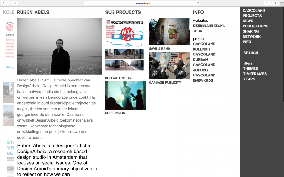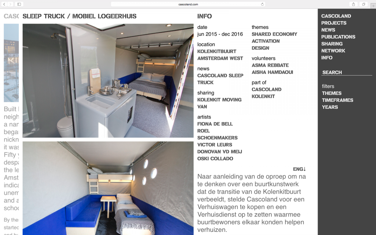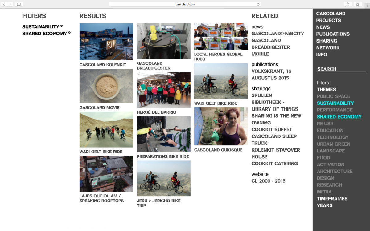 Deze filters maken het mogelijk om via de website van Cascoland inzicht te krijgen in urgente en actuele probleemstellingen in het publieke domein en hoe kunstenaars een bijdrage kunnen leveren aan een positieve ontwikkeling daarvan.