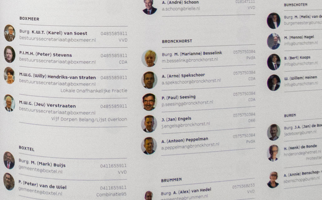 De kennis en lef leiden tot de ruimtelijke veranderingen. Veranderingen zijn gekoppeld aan personen. In de publicatie is een bellijst opgenomen, zodat bestuurders direct contact met elkaar kunnen opnemen, hoe projecten en trajecten gerealiseerd en begeleid kunnen worden vanuit de overheden.