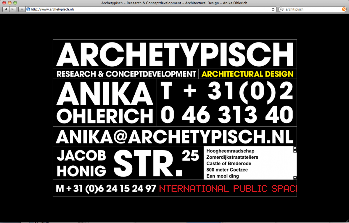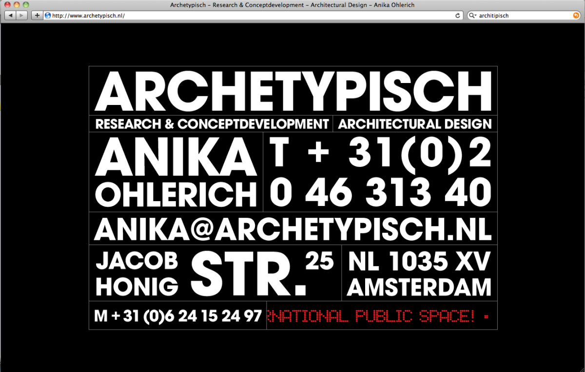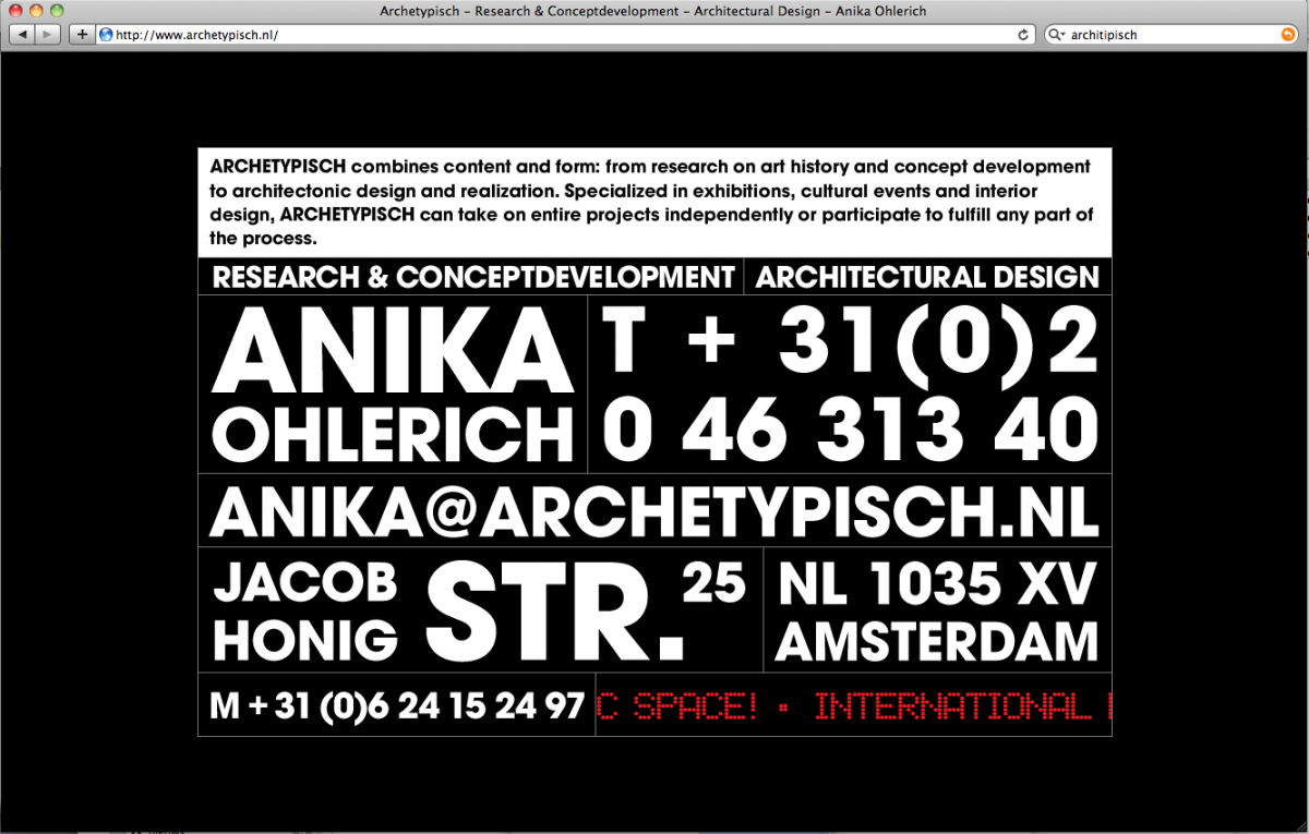 Archetypisch is een ontwerp en research buro. De research is georganiseerd rond het thema kunstgeschiedenis en architectonische geschiedenis. Van daaruit worden artistiekeĀ en architectonische projecten ontwikkeld.