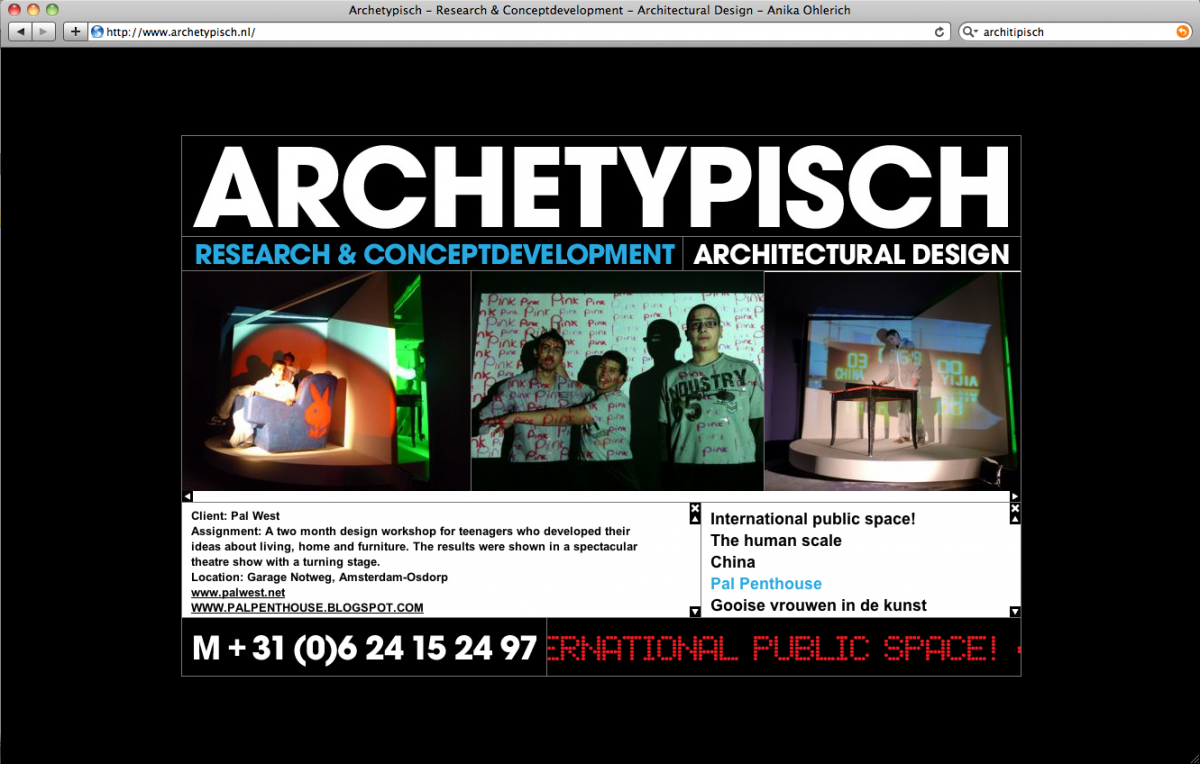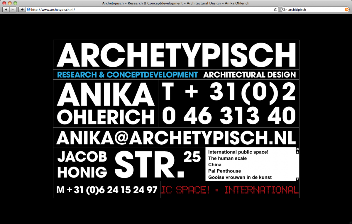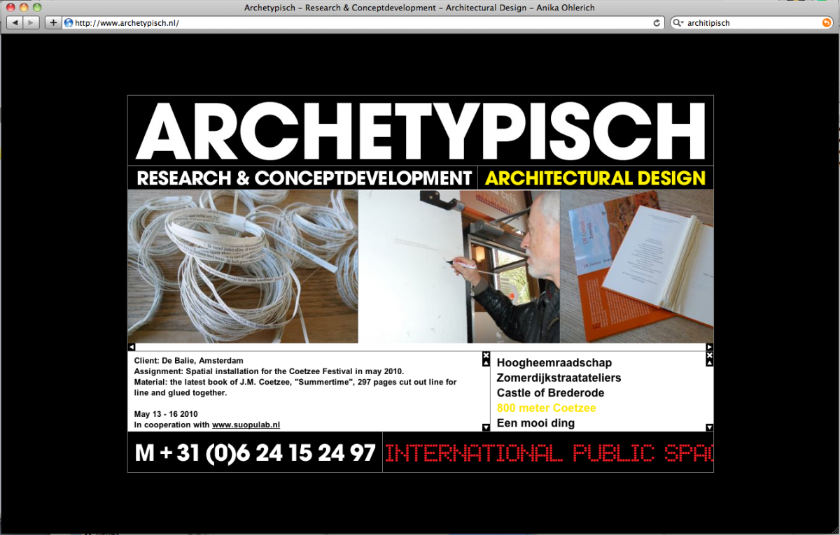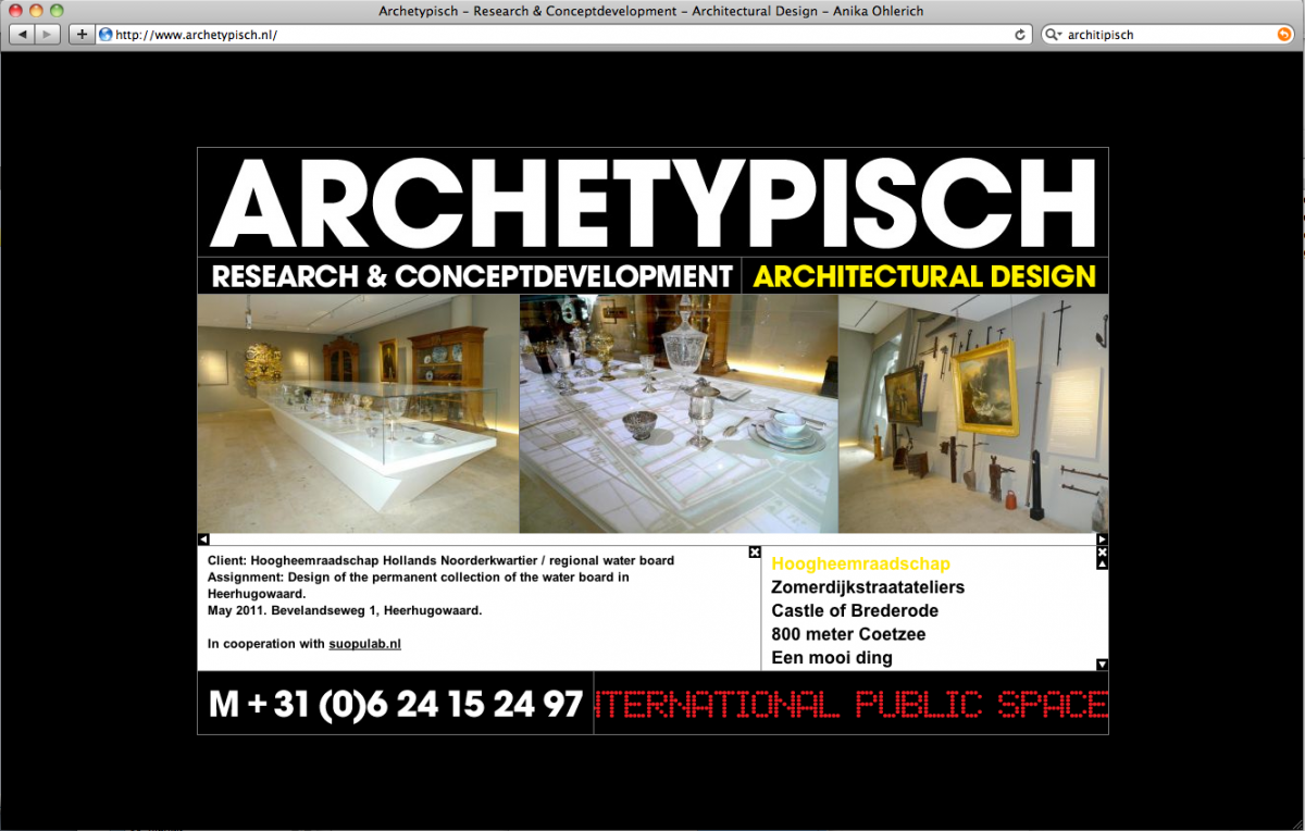 Archetypisch is een ontwerp en research buro. De research is georganiseerd rond het thema kunstgeschiedenis en architectonische geschiedenis. Van daaruit worden artistiekeĀ en architectonische projecten ontwikkeld.