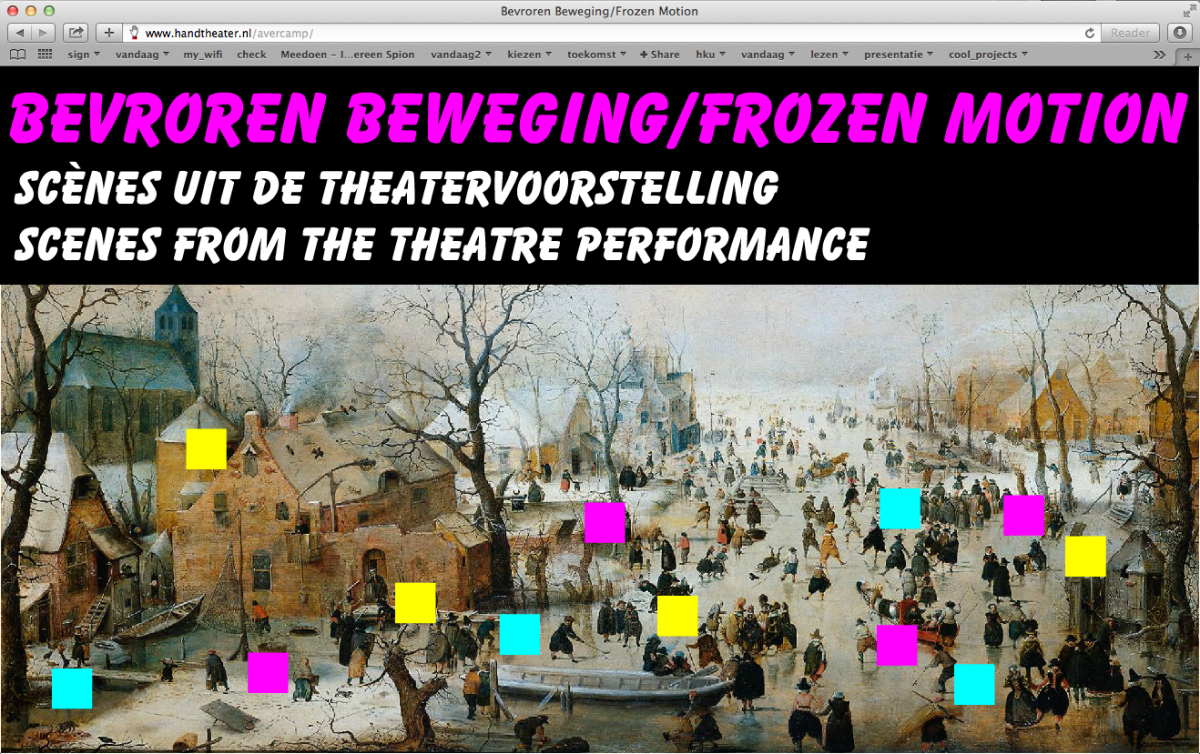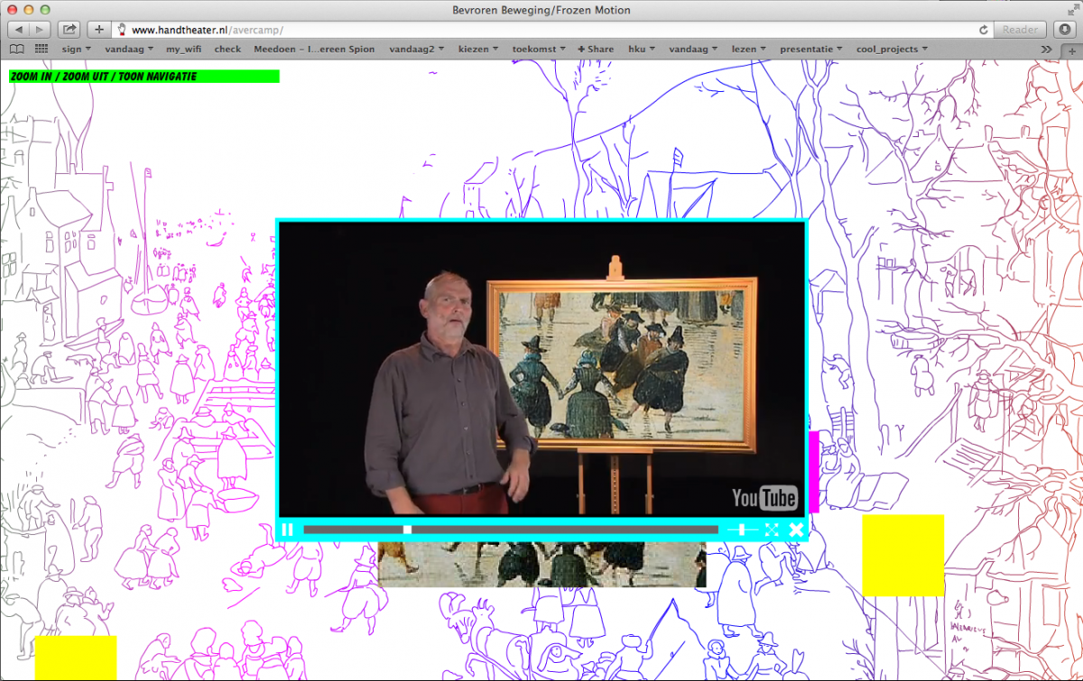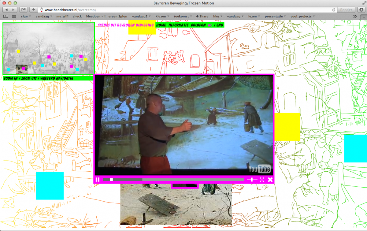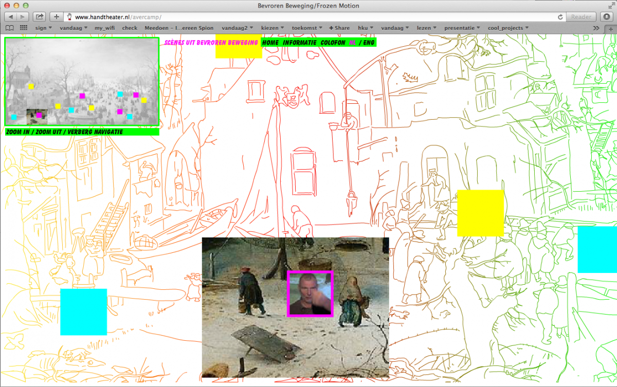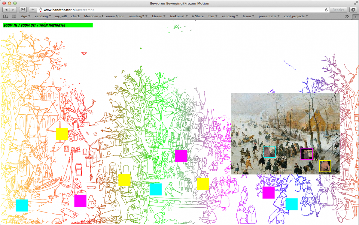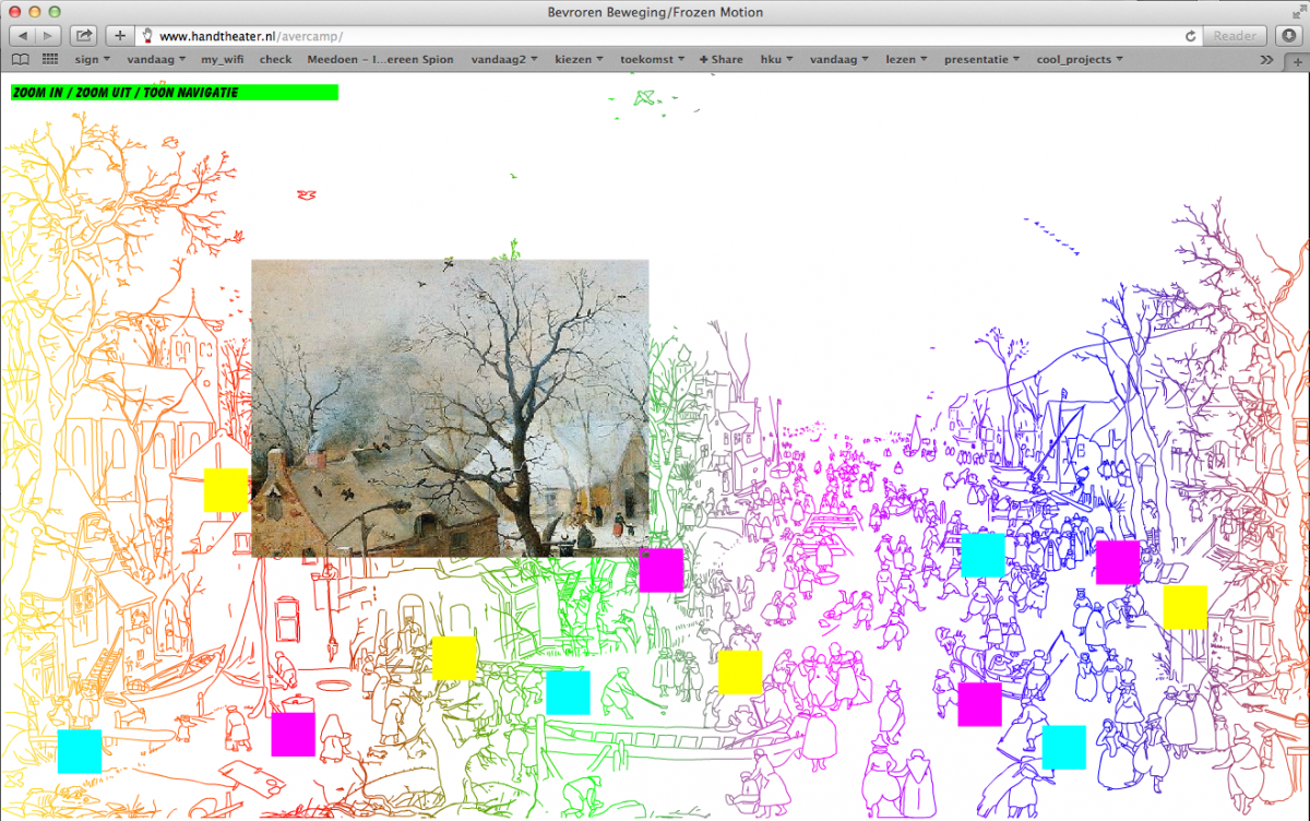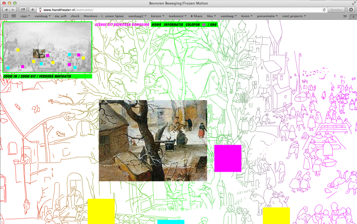 Uitgangspunt voor de site is de ontdekkingstocht die je als toeschouwer van de schilderijen van Avercamp ondergaat. Overal in het werk spelen zich kleine taferelen af. De ervaring van het zoeken wordt vertaald in de navigatie. Als een onderzoeker ontsluit je het schilderij. Over verschillende onderdelen vertelt John van Gelder, ook op de website, over de anekdotes die zich in de verschillende stukjes van het schilderij afspelen in gebaren taal.