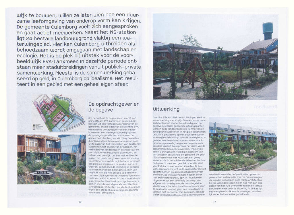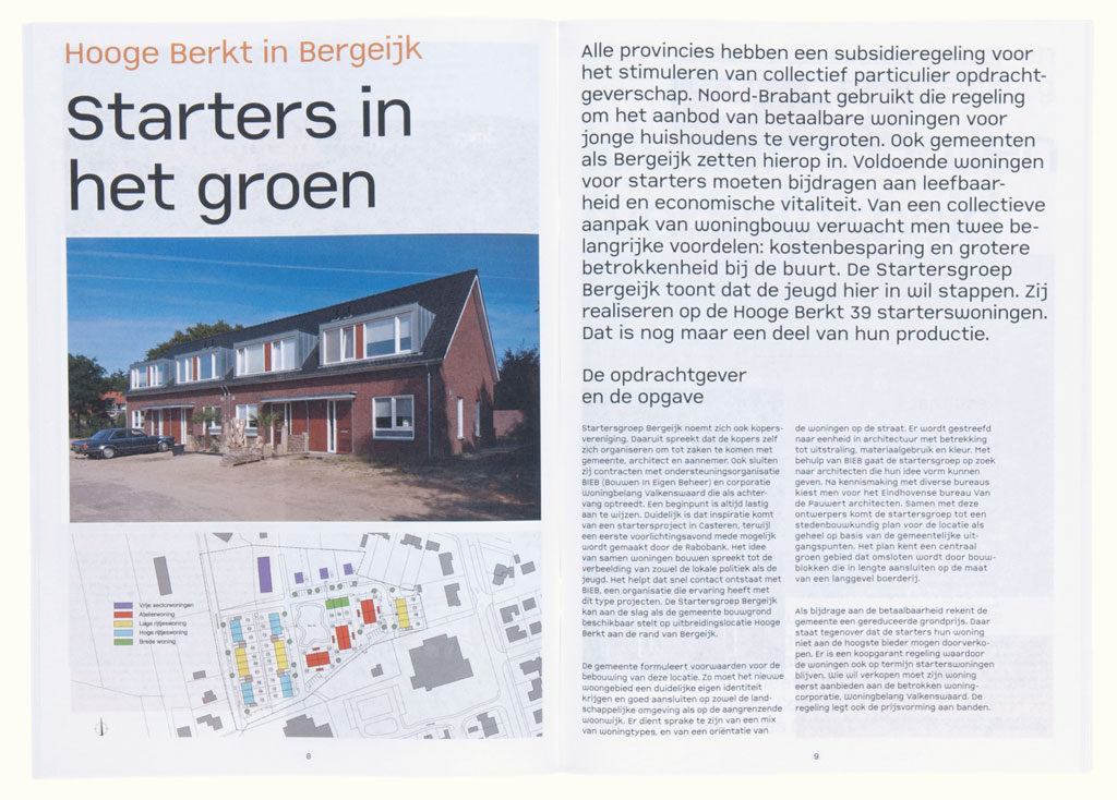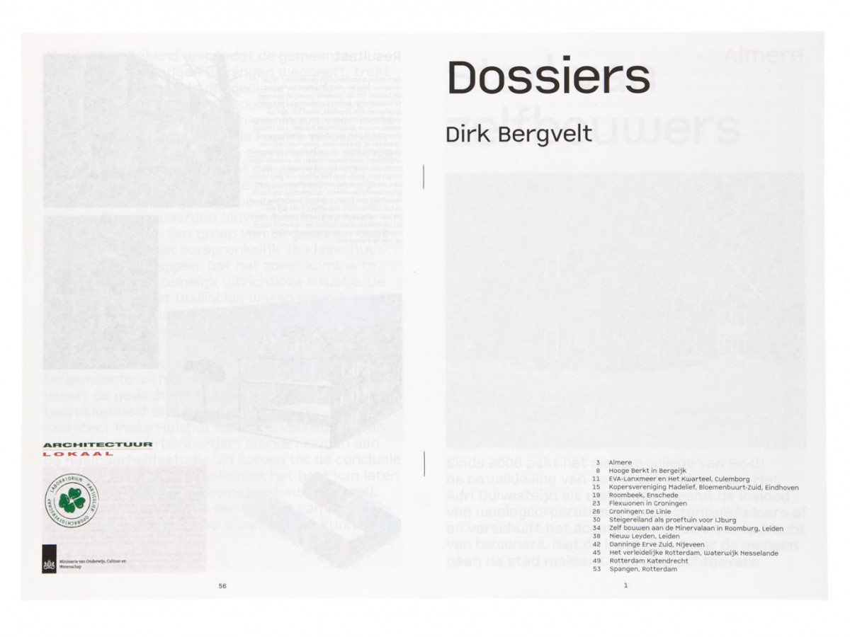 In de dossiers worden 10 projecten besproken waarbij collectieve initiatieven, samen de rol van opdrachtgever vervullen. Dirk Bergvelt onderzocht en beschreef de initiatieven die in de verschillende plaatsen worden ontwikkeld. De dossiers zijn een inspirerende verzameling verhalen, beschrijvingen en beelden, die inzicht geven in de totstandkoming en de voortgang.