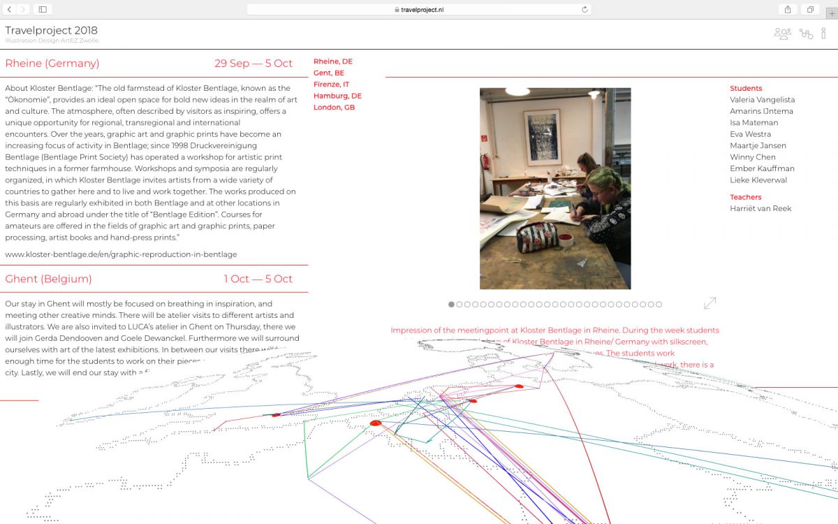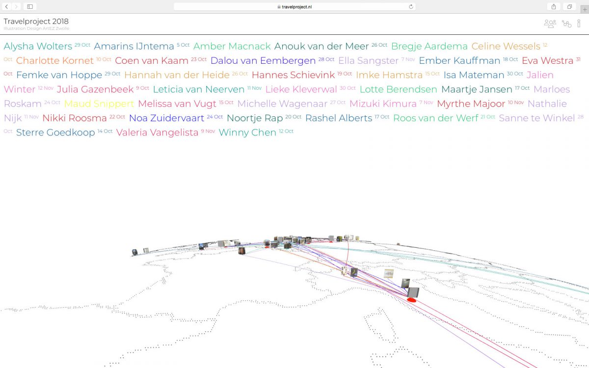 De studenten van ArtEZ illustratie worden geacht tenminste 3 weken deel te nemen aan The Travelporject. Het traject kan als individu, of in kleine groepen worden afgelegd. Op zogeheten meetingpoints kunnen de studenten samen met collega’s en docenten ontdekkingen en plannen bespreken. Er wordt gereflecteerd op de vondsten, het gemaakte werk, de ontmoetingen, kortom alles waar vanuit de begeleiding of de studenten behoefte aan is.
