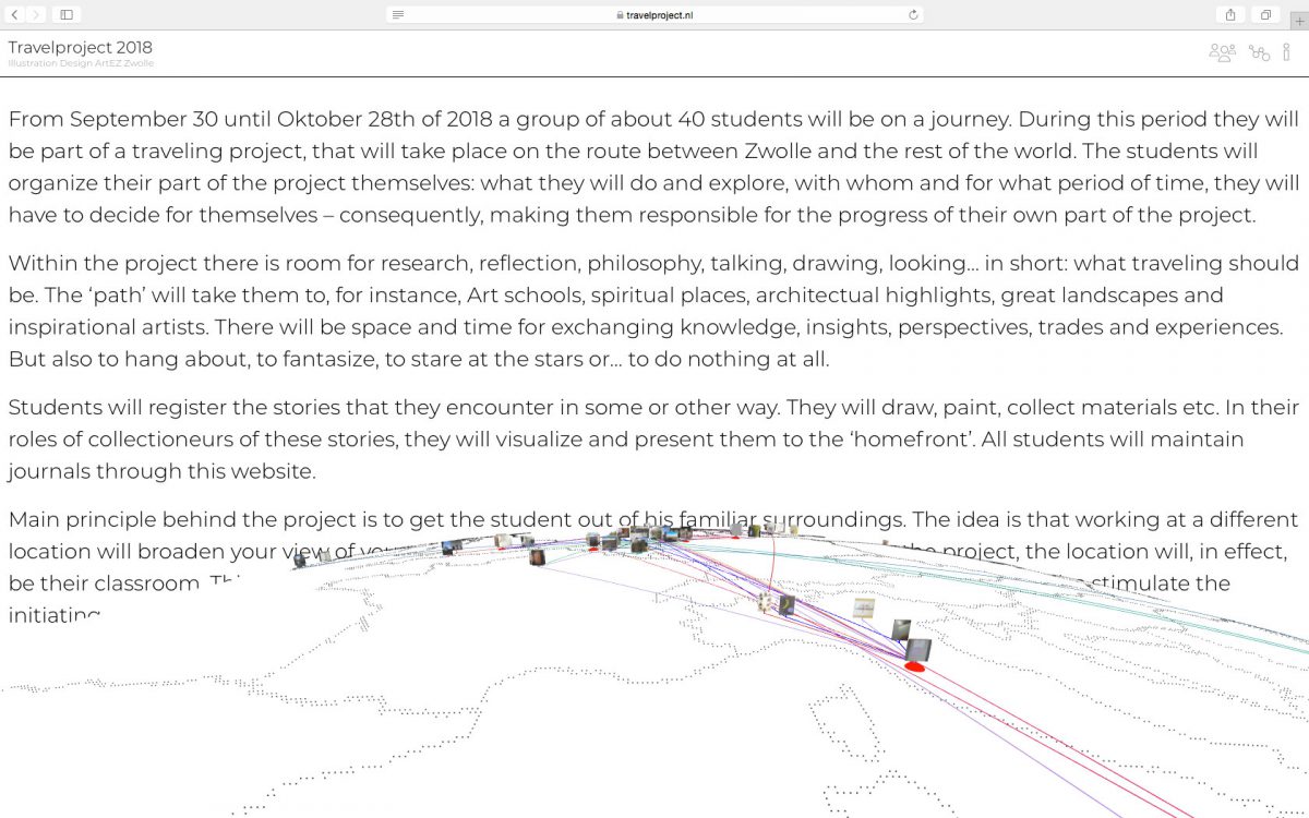 The Travelproject website functioneert daarbij als een logboek en een middels het werk te bespreken. Van de besprekingen is vervolgens weer een verslag vindbaar op de site.