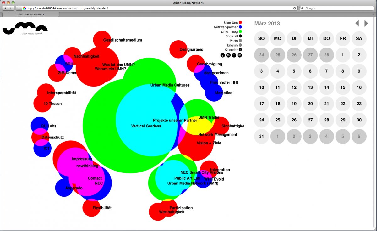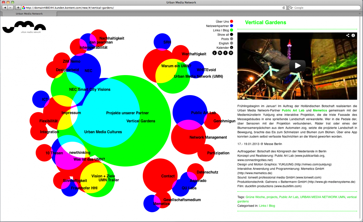 Het online platform is gebaseerd om de verschillende kleuren van licht, die in de weergaven een rol spelen. De kleuren van het licht – groen rood en blauw – zijn in het platform gebruikt om de verschillende categorieën te tonen. Die diensten en categorieën die overlappen krijgen dan ook nieuwe kleuren, die opgebouwd zijn uit de overlappingen van de lichtbronnen.