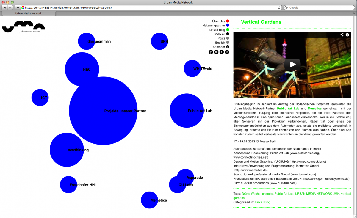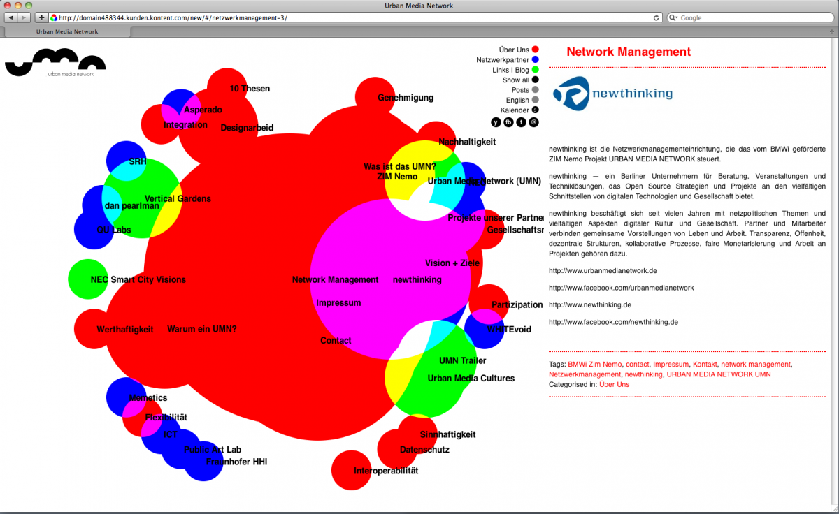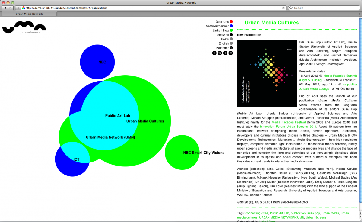 Het Urban Media Network is een groep IT bedrijven, onderzoekslabs en Universiteiten die de medialisering van de publieke ruimten onderzoeken. Specifiek doen ze onderzoek naar beeldschermen, urban screens, media facaden, media architectuur en welke rol communicatie technologieën daarbij kunnen spelen.