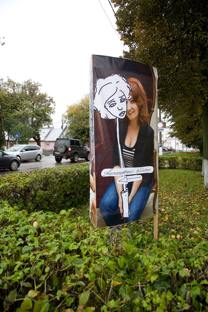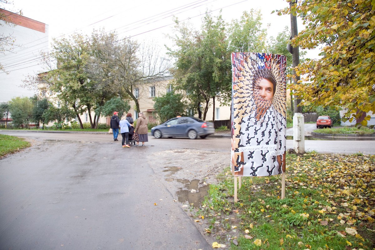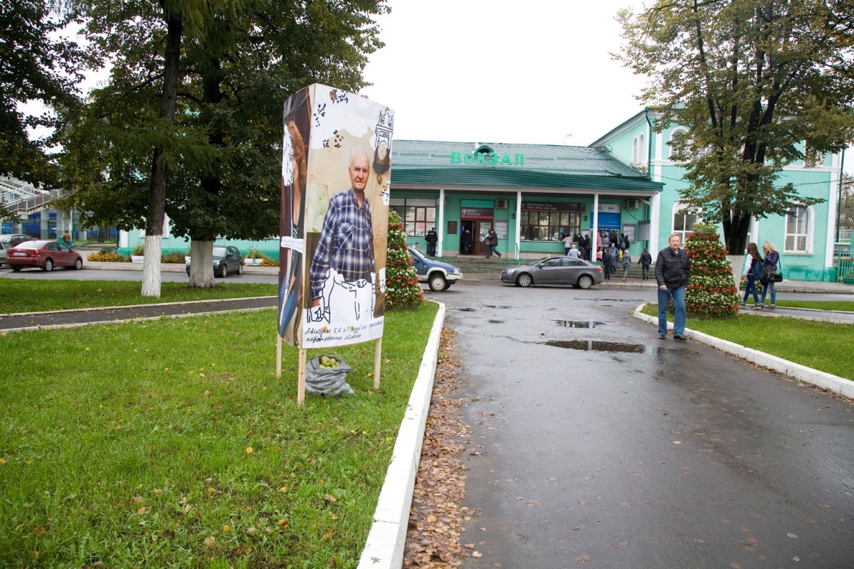 Voor de participatieve bewegwijzering voor het Apple Book Literatuur Festival in Kolomna, vroegen we negen inwoners uit negen omliggende wijken in de stad of zij – in plaats van een reguliere bewegwijzering – de mensen de weg wilden vertellen tijdens het festival. Daarbij was het gewenst dat ze belangstellenden advies gaven op basis van hun eigen smaak en persoonlijkheid. Om de bezoekers en omwonenden te informeren introduceerden wij de negen verhalenvertellers en richtinggevers met behulp van introductie ‘afbeeldingen’.