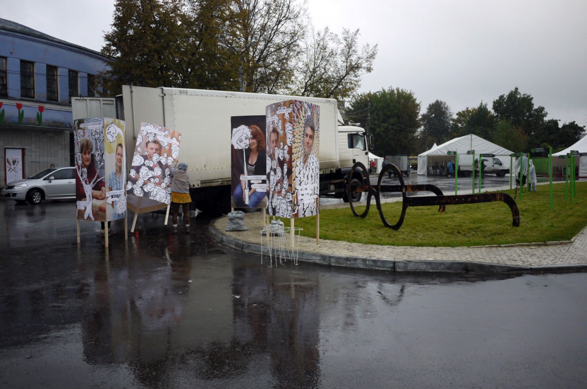 Tijdens het Apple Book Literatuur Festival in Kolomna stonden er in plaats van richtingbordjes negen inwoners die bezoekers informeerden over de voorstellingen, concerten en waar deze plaatsvonden. De aanwezigheid van een participatieve bewegwijzering is het presentatie moment van een proces, dat lang voor de aanvang van het festival startte en dat ook met de deelnemers ‘moet’ worden geëvalueerd. Wat waren kenmerken hoe ben je benaderd, vond je het leuk?