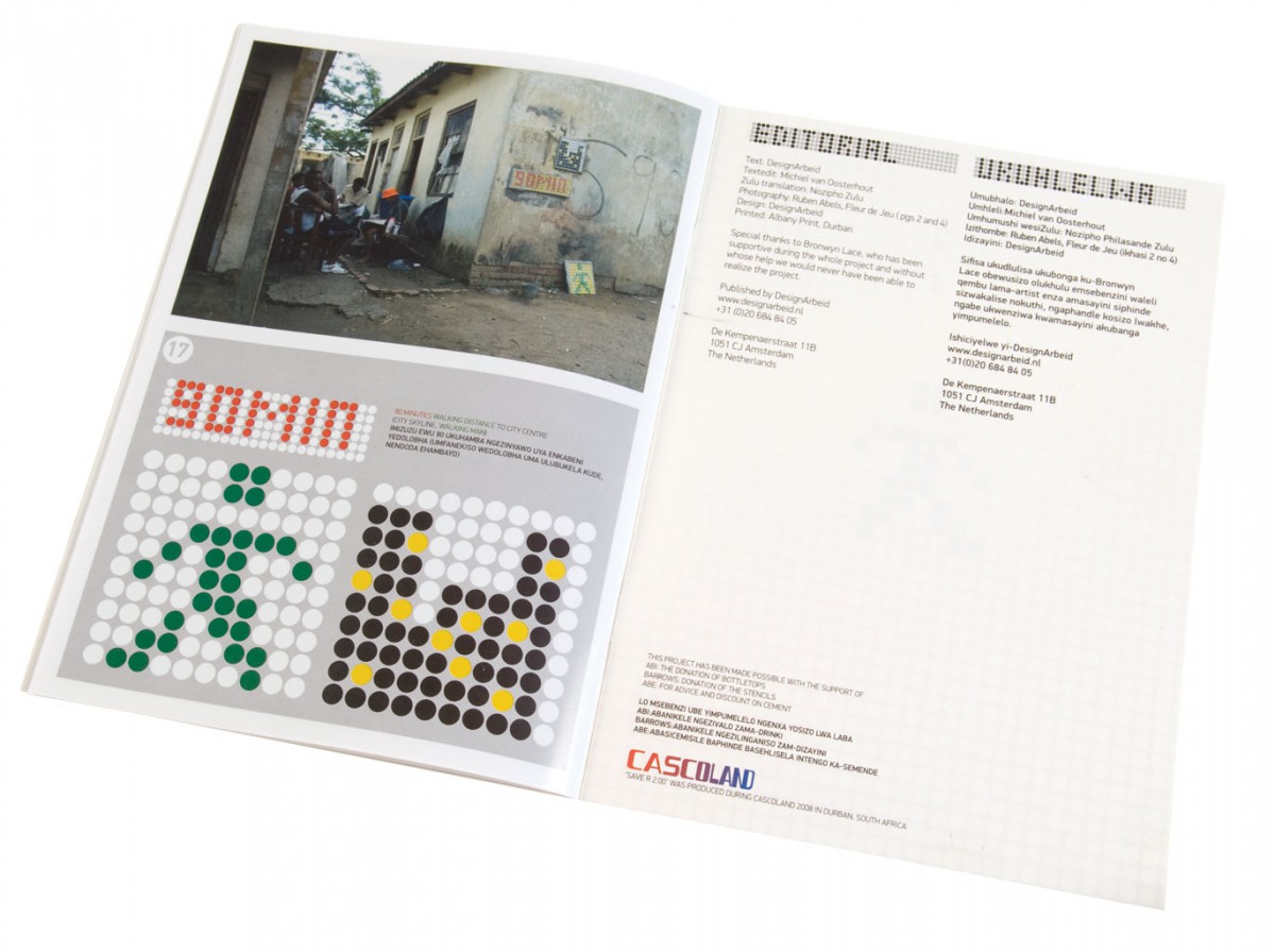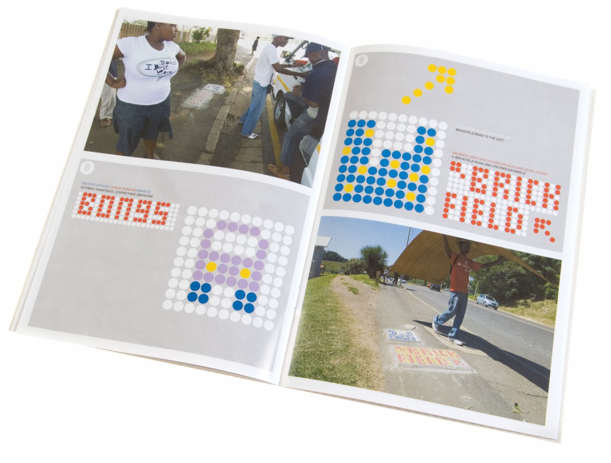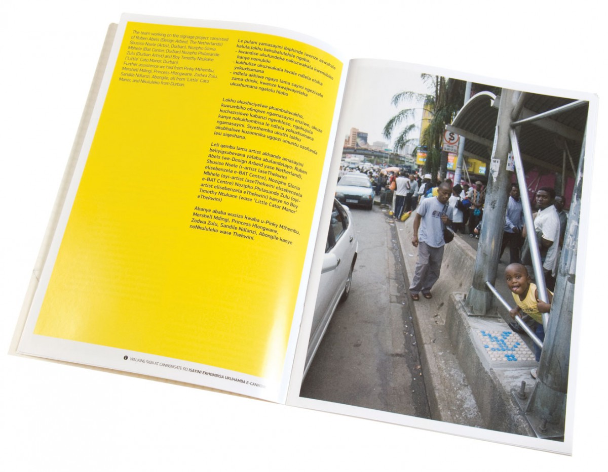 De publicatie over het bewegwijzeringsproject is ontwikkeld en uitgegeven in Durban. Het boekje is uitgedeeld aan omwonenden van de route, om duidelijk en inzichtelijk te maken, hoe eenvoudig een bewegwijzering, een naambordje of een huisnummer gemaakt kan worden. Daarnaast is de publicatie aangeboden aan het gemeente bestuur van de stad Durban. Hiermee wilden we duidelijk maken dat het niet de rol is van bewoners, ontwerpers, of kunstenaars om een wijk van straatnaambordjes te voorzien, of officiële instanties in een township aan te duiden.
