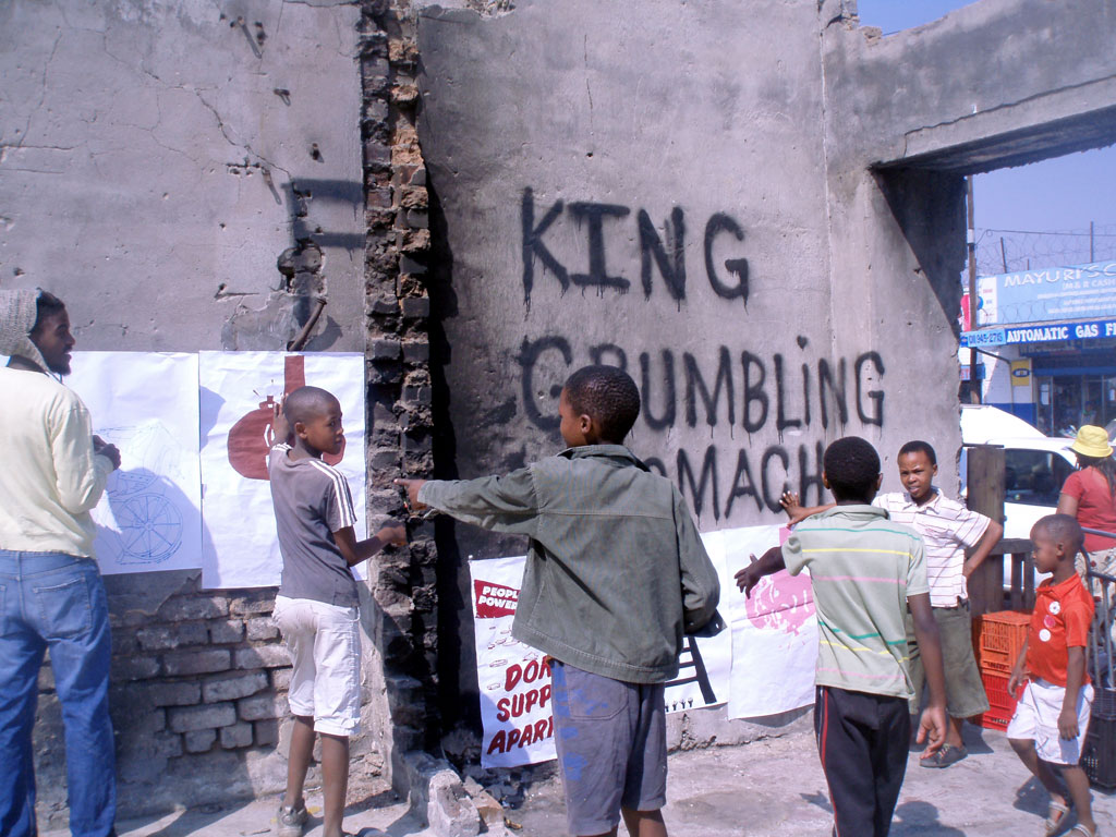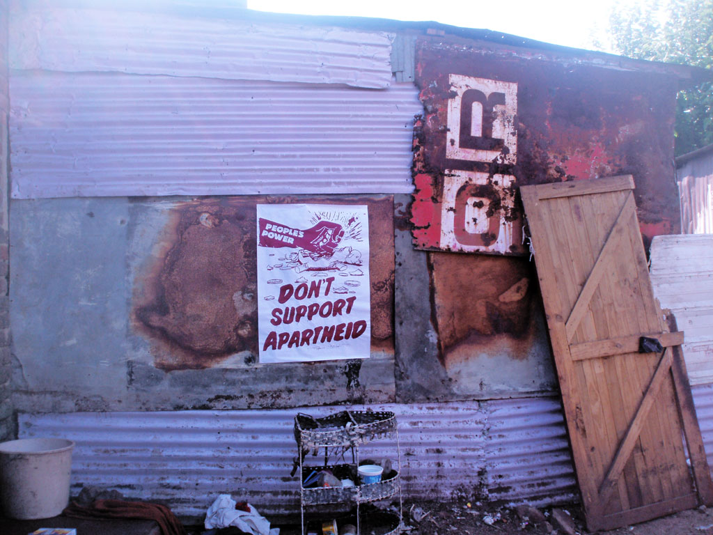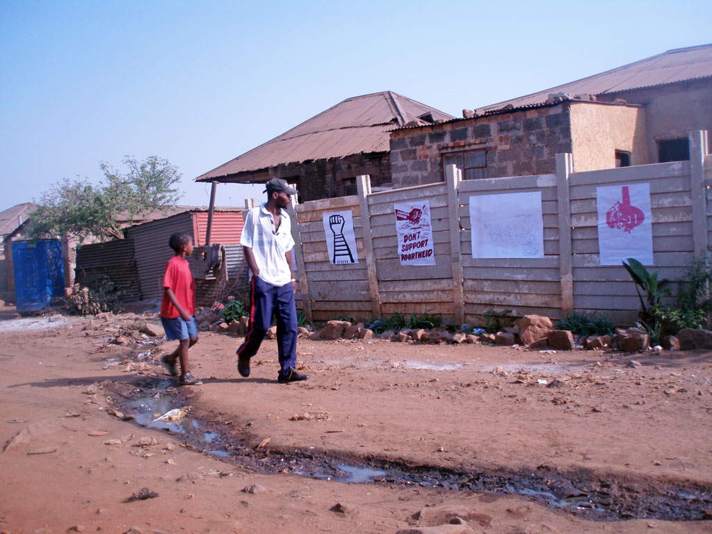 Het lijkt erop dat, hoewel de raciale appartheid officieel voorbij lijkt te zijn, blijkt die ingeruild voor een apartheid van klassen gebasseerd op inkomens. De huidige regering houdt geen rekening met de arme inwoners van haar land. In samenwerking met de een groep jongeren in Kliptown ontwikkelden we een serie affiches gebaseerd op de oude verzetsaffiches die verkocht konden worden in de nabijheid van het Anti-apartheidsmuseum in Johannesburg.