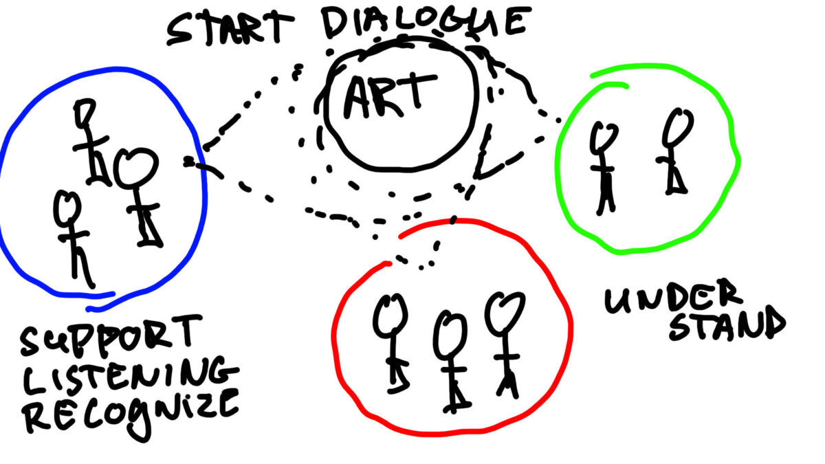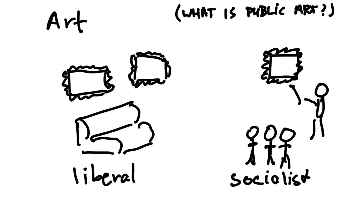 Verschillende vormen van kunst van privé tot collectief, gemeenschappelijk en politiserend.
